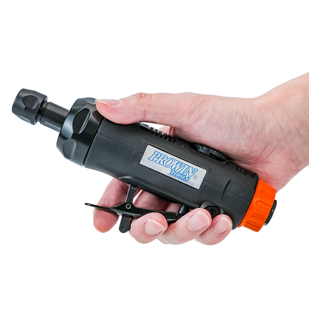 為6 毫米和 1/4 “英吋容量的夾頭,高同心度低公差製造,軸心平穩不偏移,可降低操作震動值,內部滾珠軸承結構可延長工具壽命,採用硬化鋼部件更經久耐用;這款刻磨機有膠套包覆,使其手感良好,操作不燙手,冬天使用也不冷手。